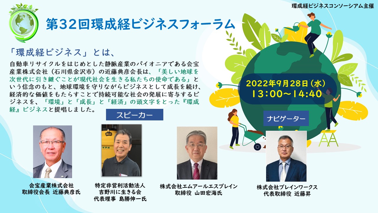 自動車リサイクルをはじめとした静脈産業のパイオニアである会宝産業株式会社(石川県金沢市)の近藤典彦会長は、「美しい地球を次世代に引き継ぐことが現代社会を生きる私たちの使命である」