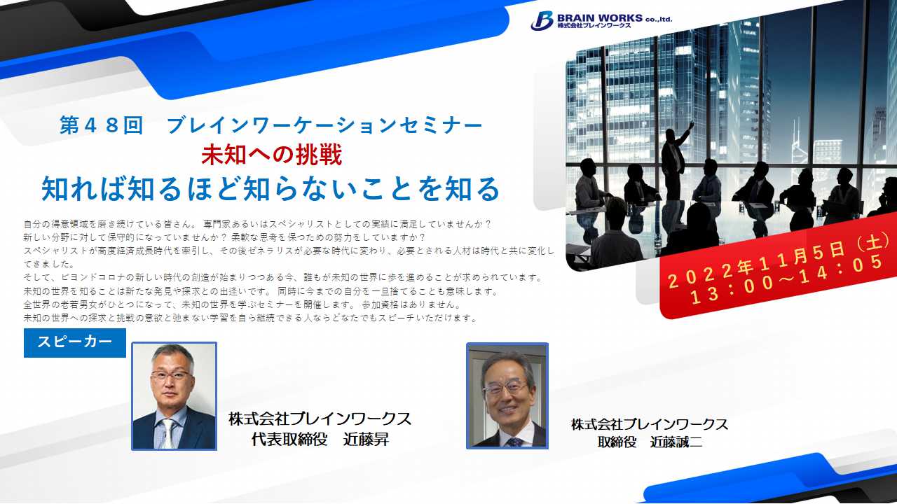 第48回ブレインワーケーションセミナー 未知への挑戦 知れば知るほど知らないことを知る (全2本)