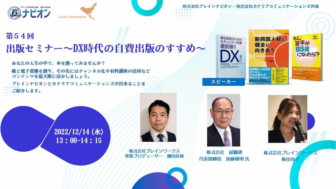 第54回出版セミナー ~DX時代の自費出版のすすめ~ (全3本)