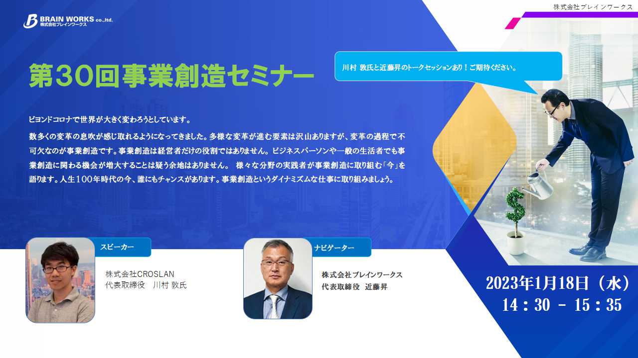 数多くの変革の息吹が感じ取れるようになってきました。多様な変革が進む要素は沢山ありますが、変革の過程で不可欠なのが事業創造です。