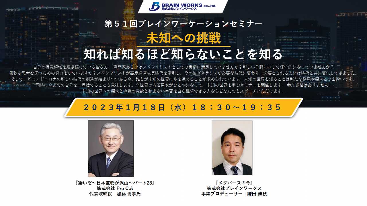 第51回ブレインワーケーションセミナー 未知への挑戦 知れば知るほど知らないことを知る (全2本)