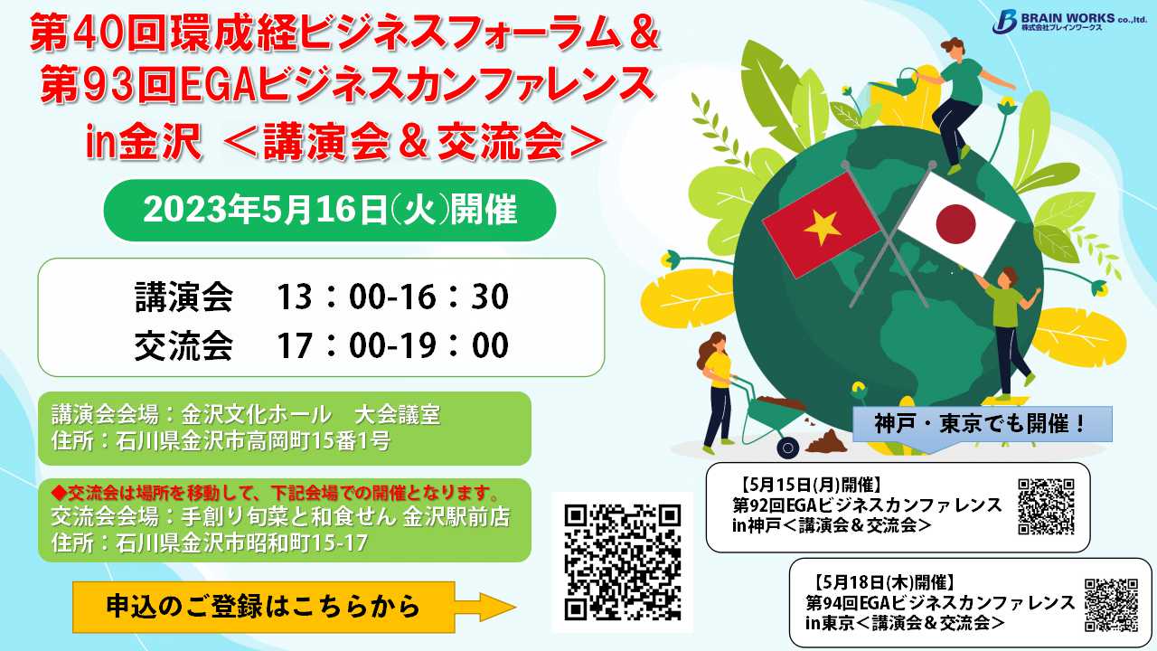 【5月16日(火)開催】第40回環成経ビジネスフォーラム&第93回EGAビジネスカンファレンスin金沢<講演会&交流会>イベントの決済フォーム (全0本)