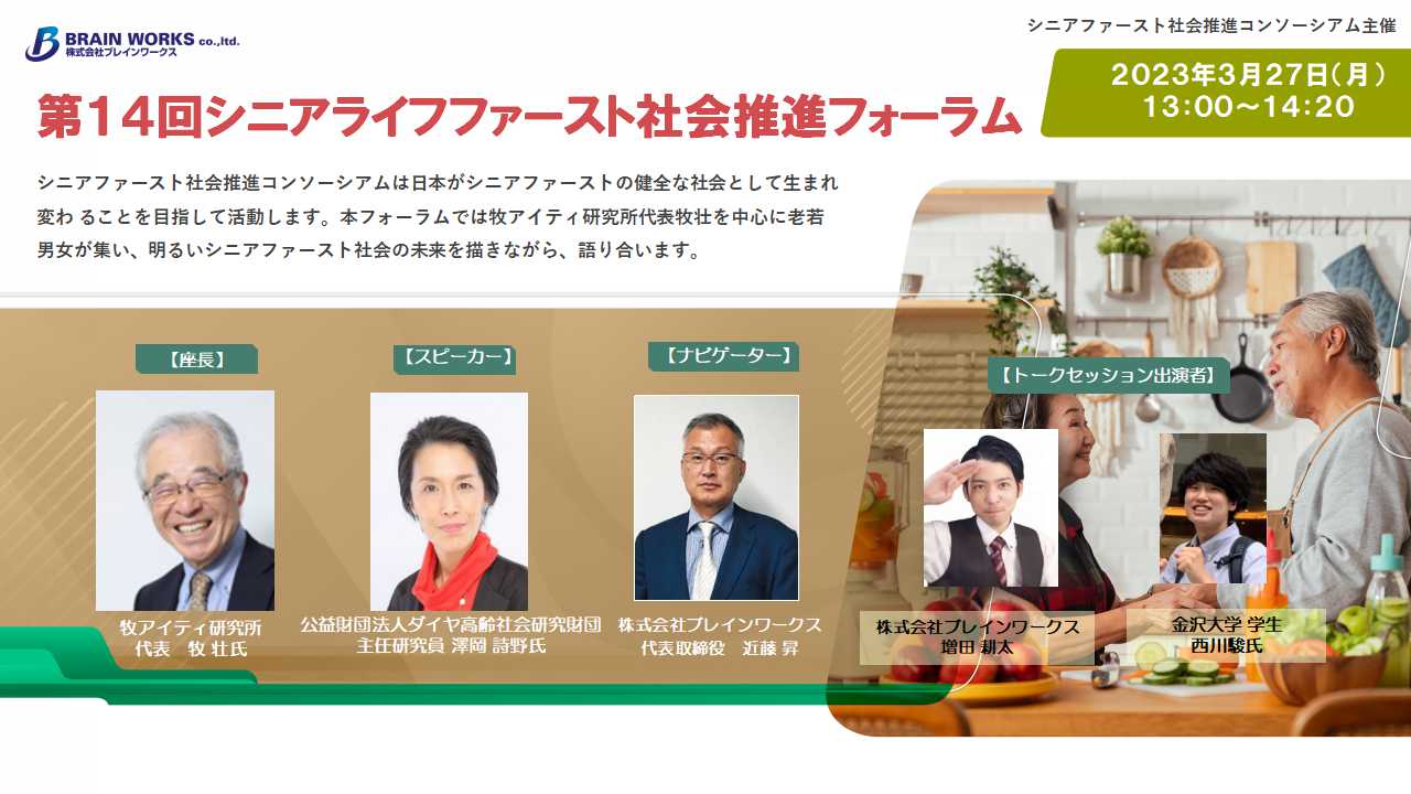 本フォーラムでは牧アイティ研究所代表牧壮を中心に老若男女が集い、明るいシニアファースト社会の未来を描きながら、語り合います。