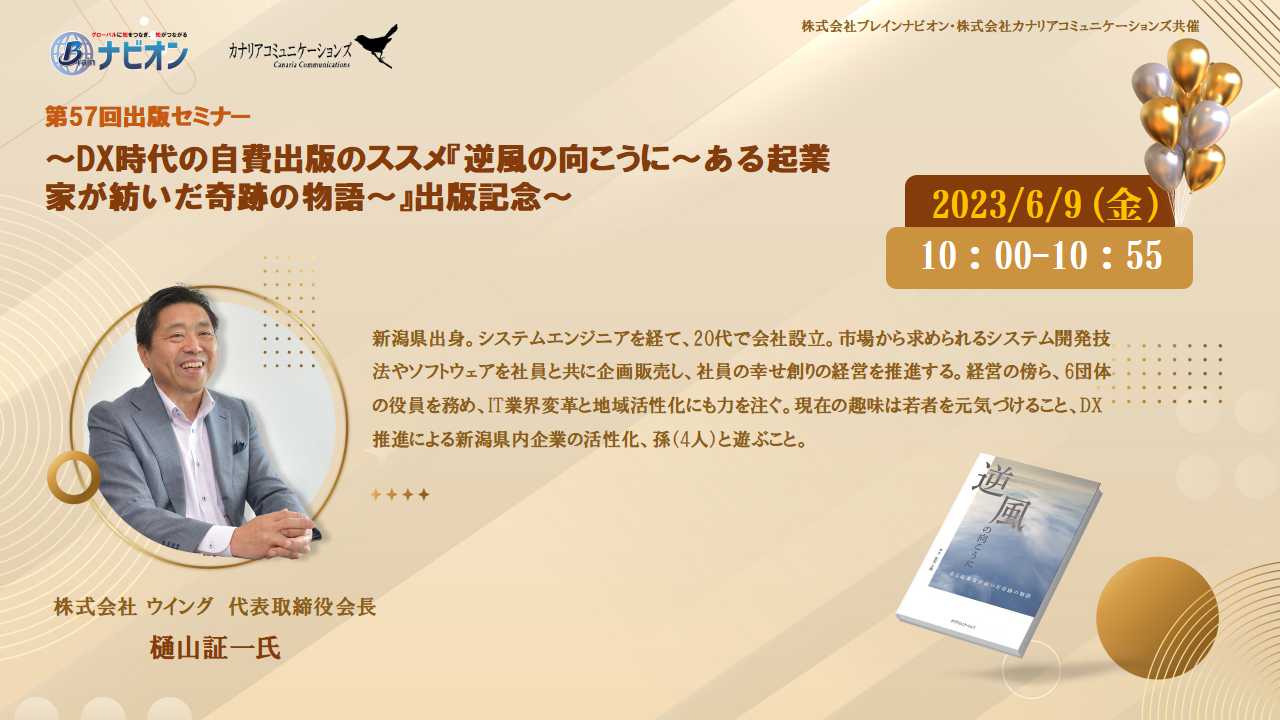 第57回出版セミナー DX時代の自費出版のすすめ~『逆風の向こうに』出版記念スペシャル~ (全1本)