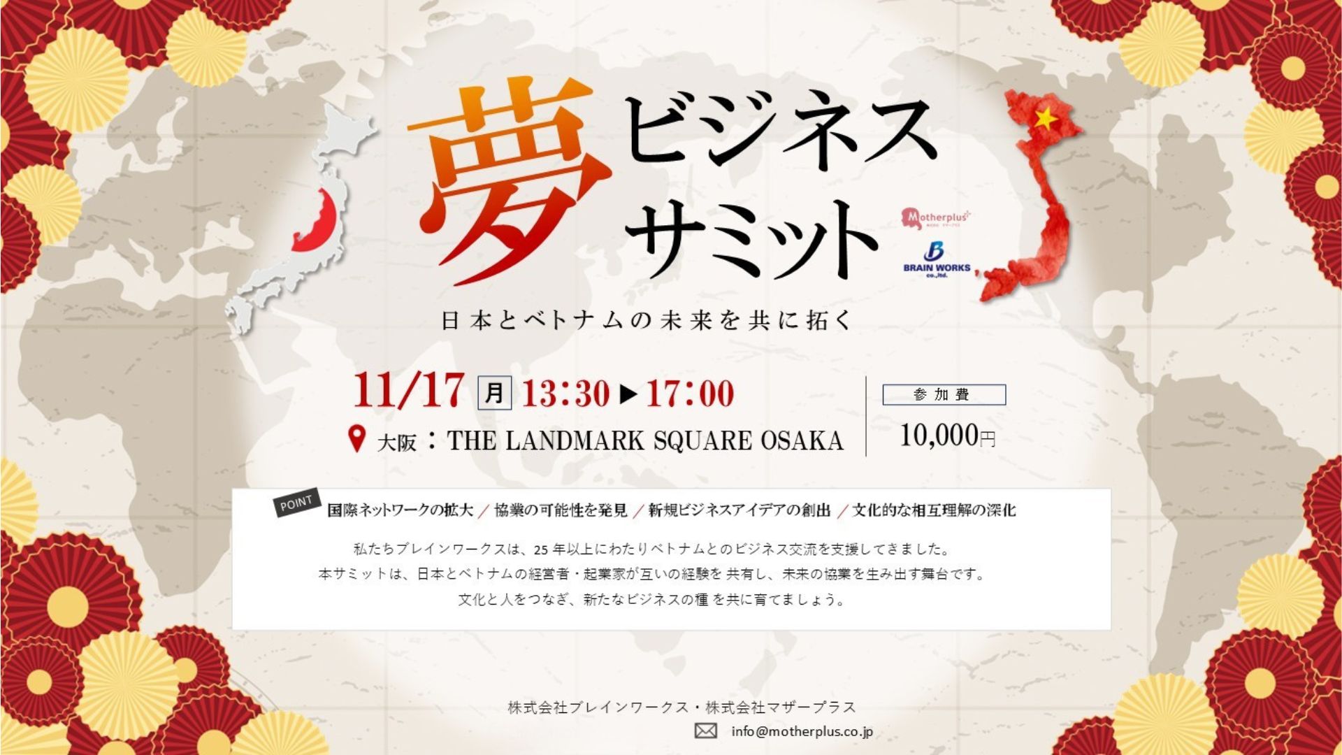 本サミットは、日本とベトナムの経営者・起業家が互いの経験を共有し、未来の協業を生み出す舞台です。